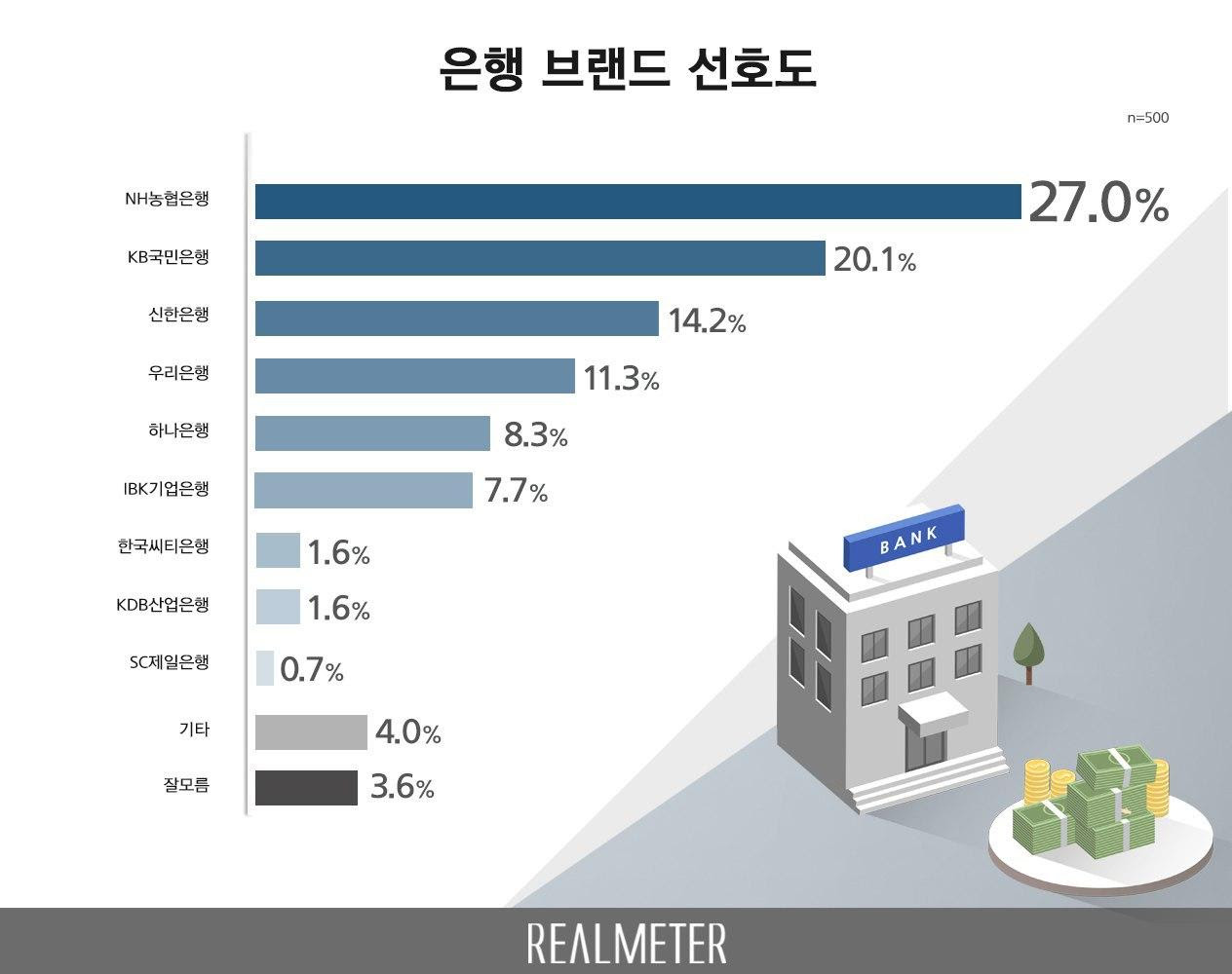 은행 브랜드 선호도 Nh농협은행 1위 Kb국민은행 2위 리얼미터 Realmeter